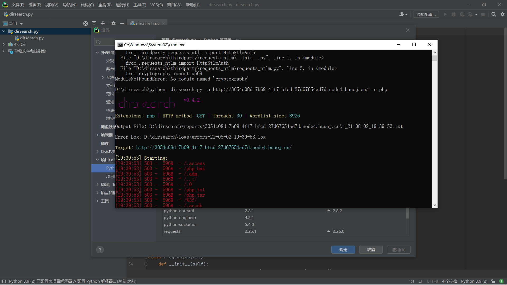 7.扫描工具Dirsearch的安装与使用 记录一下啊,调试了好长一段时间才成功的扫描工具dirsearch