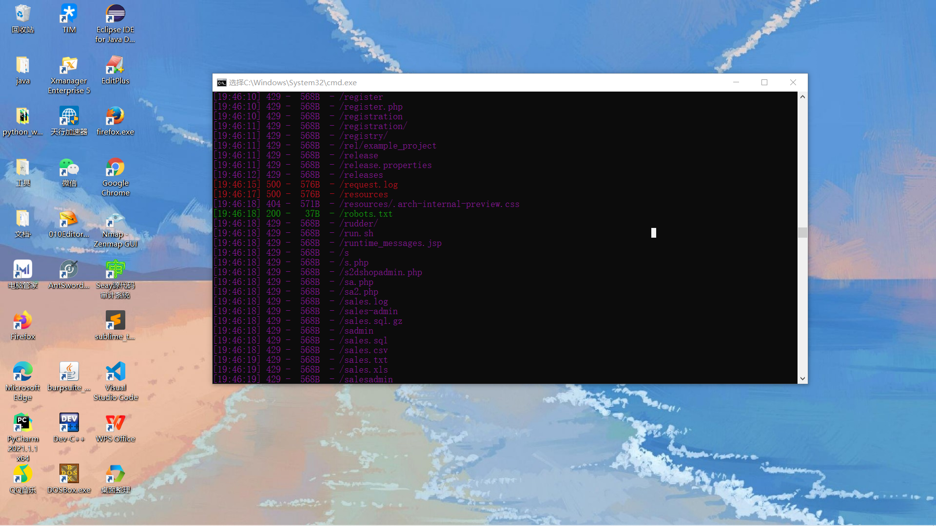 还可以调低线程:dirsearch.py -u url -e * –timeout=2 -t 1 -x 400,403,404,500,503,429
